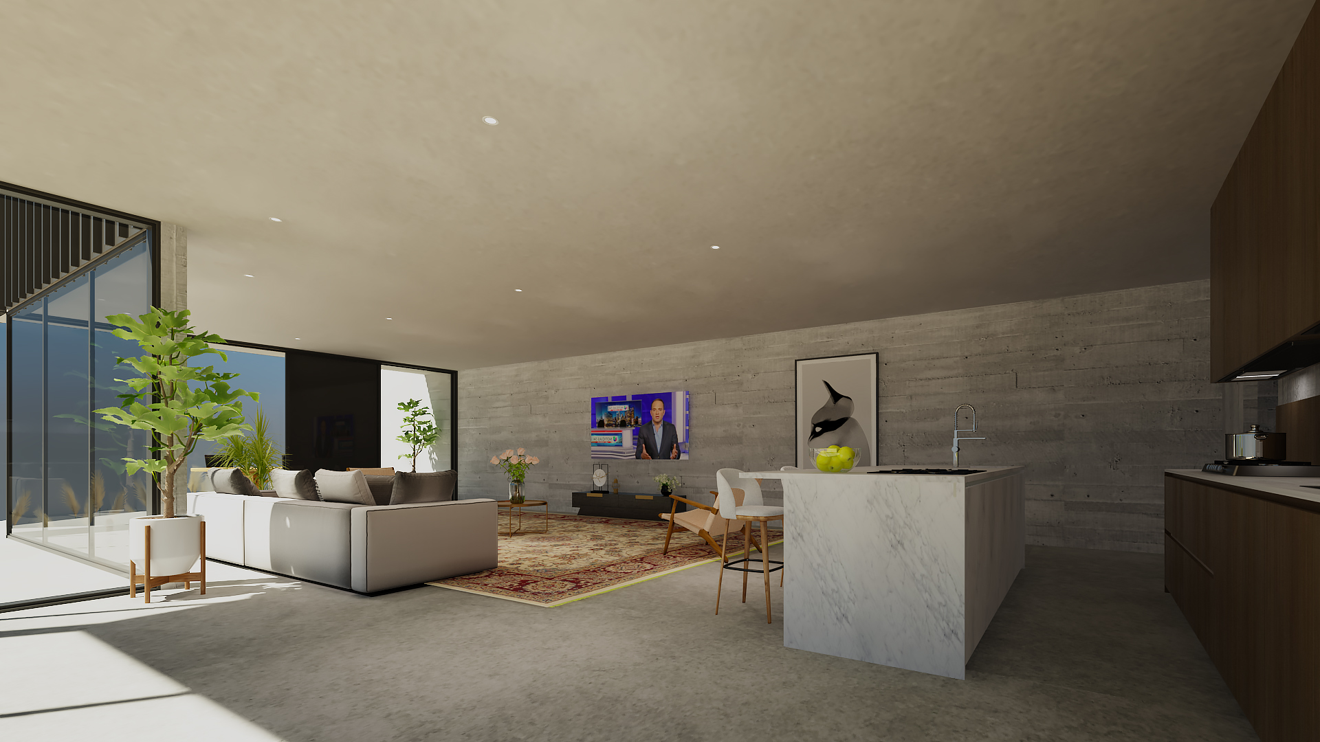 The duplex is formed by using a gable design, giving the properties the desired boatshed feel. As soon as you enter, however, you quickly realise these are not your standard boatsheds. You are greeted by open riser, in situ concrete stairs and 2.7 metre ceilings on the lower level. There is an immediate feeling of spaciousness, accentuated by sunlight washing down from the skylights of the upper level.