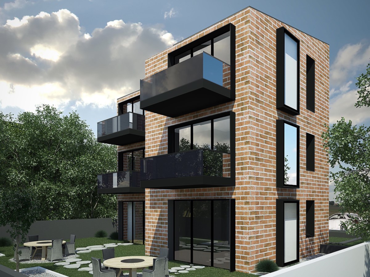 Having the main entry on the south side allowed us to have the outdoor areas for each apartment north facing – small back gardens for the ground level apartments and balconies for the homes on the second and third levels.