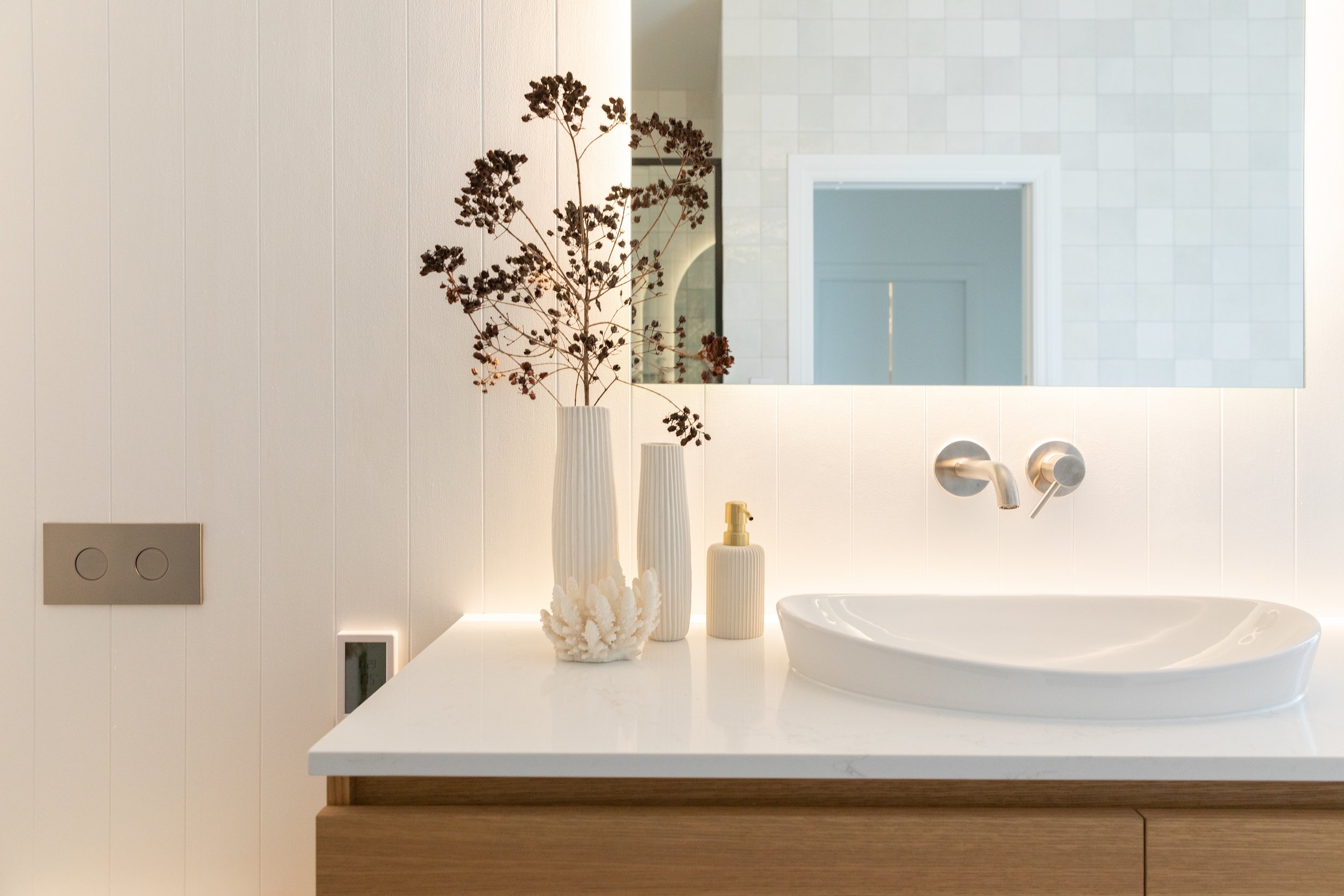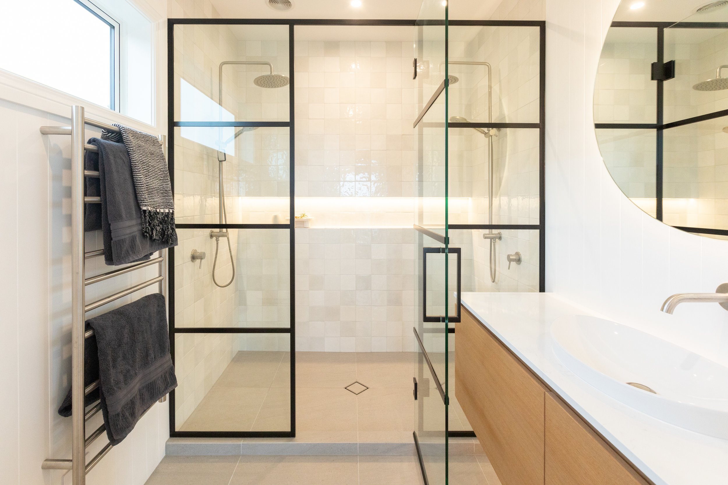Elevating the Roof and Ceilings - The original bungalow featured lovely high ceilings, but previous additions resulted in inconsistent ceiling heights and a mix of roof styles. We upgraded the ageing metal roof, maintaining the home's classic weatherboard aesthetic while introducing a modern touch. By lifting and standardising the roof structure with trusses, we achieved uniform three-metre-high ceilings throughout the upper level, enhancing the sense of space and light.