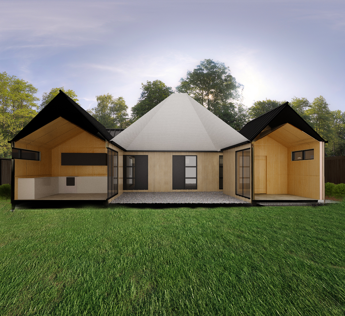 The family we worked with here owned a section of land that they had been coming to for several years, yet they didn’t have a permanent holiday home on the site. They were essentially camping on their land, in a set-up that they described to us as a “permanently stored camper van”. Feeling that the time was right to build something more enduring, the family came to us with clear ideas of what they had envisioned for their property.